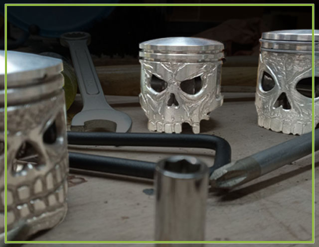Mit Leidenschaft gefertigte Kolben als Motorrad-Deko. Stell ihn auf deinen Schreibtisch oder verschönere deinen Auto-Schalthebel.